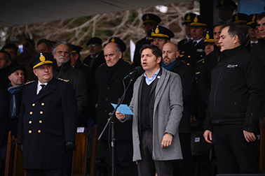 El gobernador de la provincia de Buenos Aires, Axel Kicillof, encabezó este lunes junto al ministro de Seguridad, Javier Alonso, el acto de jura de fidelidad a la bandera nacional de 2.736 cadetes que finalizarán este año el proceso de formación.