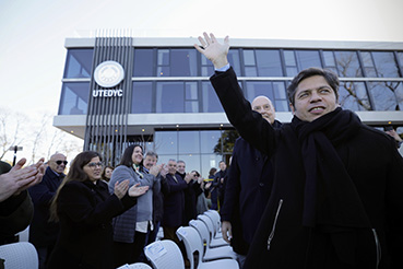 El gobernador Axel Kicillof encabezó este viernes el acto de inauguración del nuevo hotel de la Unión de Trabajadores de Entidades Deportivas y Civiles (UTEDYC) en el municipio de Chascomús. Fue junto al ministro de Trabajo, Walter Correa; el intendente local, Javier Gastón; y los secretarios generales de UTEDYC a nivel nacional, Carlos Bonjour, y local, Sebastián Amadeo.