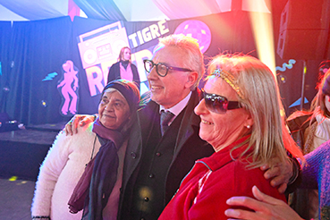 En el polideportivo Mariano Moreno de Troncos del Talar, el intendente de Tigre, Julio Zamora, y la secretaria de Desarrollo Social y Políticas de Inclusión, Gisela Zamora, participaron de la Fiesta Retro, el multitudinario evento organizado por el Municipio para más de 300 vecinos y vecinas de los centros deportivos locales.