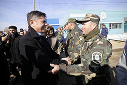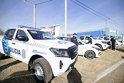 Durante la jornada, Kicillof y el ministro de Seguridad, Javier Alonso, pusieron en funcionamiento nuevos patrulleros para fortalecer la prevención y el combate del delito en el distrito.