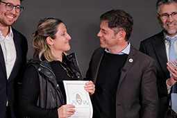 En ese marco, Kicillof afirmó: “Jornadas como la de hoy en Florentino Ameghino son nuestra respuesta a los sectores que quieren desvalorizar el rol del Estado: es la inversión pública la que permite que haya nuevos patrulleros y escrituras gratuitas para vecinos y vecinas que esperaron durante mucho tiempo”. “Si sacamos al Estado del medio, no solo no vamos a solucionar ningún problema, sino que nos quedaríamos sin rutas, sin hospitales y sin escuelas: no vamos a permitir que avancen sobre los derechos que nuestro pueblo conquistó con tanto esfuerzo”, agregó.