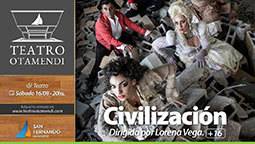 Sábado 16 – 20 hs. Sábados Espectaculares – Teatro: “Civilización”, con Julieta Brito-Pablo Fusco-Andrea Nussembaum-María Inés Sancerni-Mariano Sayavedra. Autor: Mariano Saba. Dirección: Lorena Vega. Buenos Aires, 1792. Arde el teatro de la Ranchería y las llamas iluminan la noche virreinal. En su espantada huida, dos grotescas damas pierden el rumbo. Dejan atrás una tercera hermana mestiza a quien dan por muerta en el siniestro. Caminan solas por una llanura encharcada, entre pajonales y alimañas. Añoran la civilización, la cálida urbanidad europea que les fuera legada por sus padres hispanos. Pero la impostura declina: toda tragedia esconde una traición y la verdad les pisa los talones. Espectáculo estrenado en el año 2020 en el Teatro Nacional Cervantes, con producción del TNC. Cuenta actualmente con elementos de Vestuario del TNC. Formó parte del evento “El Cervantes en la Biblioteca”.