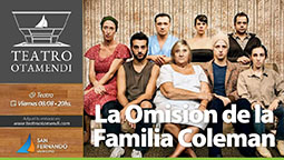 Viernes 8 – 20 hs. Ciclo de Teatro: “La Omisión de la Familia Coleman” con Cristian Maresca, Miriam Odorico, Inda Lavalle, Fernando Sala, Tamara Kiper, Gonzalo Ruiz, Jose Frezzini y Jorge Castaño. Autor: Claudio Tolcachir. Una familia viviendo al límite de la disolución, una disolución evidente pero secreta; conviviendo en una casa que los contiene y los encierra, construyendo espacios personales dentro de los espacios compartidos, cada vez más complejos de conciliar. Una convivencia imposible transitada desde el absurdo devenir de lo cotidiano, donde lo violento se instala como natural y lo patético se ignora por compartido.