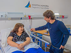 En la visita también estuvieron presentes el Secretario de Salud Pública, Marcelo Campos; la Subsecretaria Claudia Regenjo; la coordinadora médica del Hospital Municipal, Laura Payero; y familiares de la paciente que participaron emocionados.