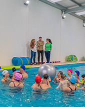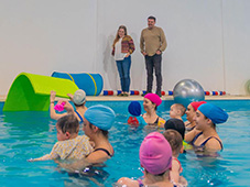 La secretaria municipal participó de estas clases, que se realizan en pileta climatizada, los bebés se conectan con el agua desde el embarazo y en sus primeros meses de crecimiento. El agua es el medio terapéutico donde madres y padres acompañan a sus niños en actividades lúdicas con el objetivo de mejorar el desarrollo psicomotor y la autonomía.