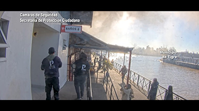 Las cámaras de la central de monitoreo divisaron un foco ígneo en un comercio ubicado en la dársena de uno de los puntos turísticos más visitados del distrito. De manera inmediata, se activó el protocolo, que contó con la presencia de Bomberos Voluntarios de Tigre centro y Prefectura Naval Argentina; Tránsito, Defensa Civil y médicos del Sistema de Emergencias Tigre (SET).
