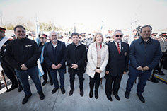 El gobernador de la provincia de Buenos Aires, Axel Kicillof, encabezó este jueves junto a la vicegobernadora Verónica Magario y el intendente de Ensenada, Mario Secco, la inauguración del nuevo cuartel de Bomberos Voluntarios “Sargento 1° Cirilo Pergolesi” en la localidad de Punta Lara.
