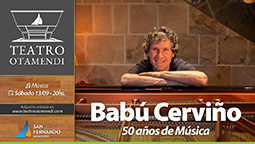 Sábado 13 – 20 hs. Ciclo de Música: “Babú Cerviño: 50 años de Música”. Babú Cerviño es un músico, compositor, arreglador y productor, nacido en San Fernando, que ha tocado con los más grandes artistas de Argentina. Director musical de Víctor Heredia desde 1990. Integrante de grupos históricos del rock nacional, como Tantor y Git, con más de 50 producciones musicales como sesionista, arreglador y productor. Grabó los álbumes: Babú Cerviño (1984); El mundo está tan dado vuelta (1986); Los días que vendrán (2003); Cruzando el río (2014); Inyinai (2022); La Magia de tocar mi música (2024/25). En este espectáculo, celebra 50 años de carrera, tocando material de todos sus discos, con su grupo integrado por 6 músicos y con invitados que han transitado con él este camino.