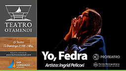 Domingo 21 – 18 hs. Ciclo de Teatro: “Yo, Fedra”. Artista: Ingrid Pellicori. Autoría y dirección: Analía Fedra García. «Fedra es un abismo. Un misterio. Una mujer madura que se enamora hasta los huesos, de un hombre joven y prohibido. Fedra susurra retazos de su historia, para todas las personas que la quieran escuchar». Nominada a Mejor Actriz Protagónica Oficial-Premio Martín Fierro 2024.