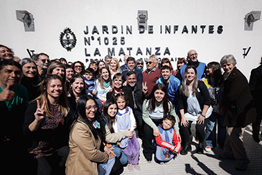 Durante la jornada, el Gobernador y el director general de Cultura y Educación, Alberto Sileoni, inauguraron el nuevo Jardín de Infantes N°1025, el primero con doble jornada en el municipio. A partir de una inversión de $1.502 millones, las instalaciones cuentan con seis aulas, biblioteca, SUM, sala de música y patio de juegos.