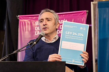 A través de esta acción, ejecutada por el Ministerio a través de la Subsecretaría de Hábitat, mediante la Ley 24.374 y otras normativas, se busca reconocer el derecho a la propiedad de quienes habitan desde hace años en su vivienda pero no cuentan con el título de propiedad que les garantice seguridad jurídica. De esta forma, el Estado bonaerense cumple con lo establecido en el artículo 36 inciso 7 de la Constitución de la provincia de Buenos Aires.