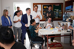 El gobernador de la provincia de Buenos Aires, Axel Kicillof, visitó este jueves junto al ministro de Infraestructura y Servicios Públicos, Gabriel Katopodis, y el intendente de Luján, Leonardo Boto, el Taller Protegido municipal, un espacio que promueve la inserción social y laboral de personas con discapacidad.