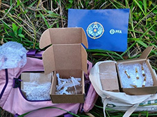 Al efectuar la requisa de los elementos descartados, se verificó de qué se trataba de un bolso deportivo y una bolsa, los cuales en su interior contenían cajas con un total de 200 ampollas de Fentanilo, de procedencia extranjera.