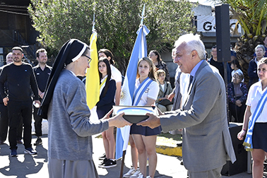 El jefe comunal acompañó a la comunidad educativa en la celebración por el arribo de las mujeres religiosas para la construcción del colegio Don Orione. Durante el acto, se hizo un repaso de la historia de la institución por parte de los directivos, ex directivos y alumnos.