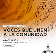 Con entrada libre y gratuita, la Universidad Austral invita a una jornada de música, arte y solidaridad a beneficio de la Posta Sanitaria Las Lilas, el jueves 4 de diciembre a las 18.30 en el Campus Pilar.