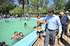 Asimismo, Kicillof estuvo presente en el predio municipal Tiro Federal, donde alumnos del Programa Envión que asisten a Escuelas Abiertas en Verano realizaron una muestra de arte y cultura. Finalmente, el Gobernador se acercó hasta el Complejo Turístico municipal, en el que personas mayores realizan actividades de recreación y socialización.