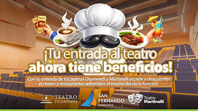 El Municipio de San Fernando ofrece al público asistente a sus teatros Otamendi y Martinelli beneficios con la compra de su entrada, como descuentos en bares y restaurantes adheridos durante 2026.