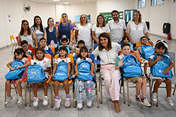«Continuamos con la entrega de útiles escolares a todos los chicos de primer grado que inician la primaria. Están recibiendo la mochila con todo lo que necesitan para aprender. Esto colabora con las familias en una situación económica difícil que venimos atravesando», declaró la secretaria de Educación y Promoción Social, Gisela Zamora.