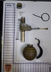 En esas circunstancias, y a solicitud de la Dirección General de Operaciones de la PFA, se hizo presente personal de la División Operaciones y Contramedidas, perteneciente a la Dirección General de Explosivos y Riesgos Especiales. Luego de que personal de la División Unidad de Prevención en Medios de Transporte estableciera un anillo de seguridad más amplio alrededor de la estación ferroviaria, los especialistas inspeccionaron el artefacto explosivo, constatando que se trataba de una granada de mano explosiva Fmk-2 Mod. 0.