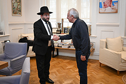 Durante el encuentro realizado en el Palacio Municipal, Eliahu Hamra le entregó un cuadro de la fachada de la AMIA y el intendente obsequió un presente por parte del Municipio. Participó de la reunión el Secretario General de Hacoaj, Sebastian Szabo.